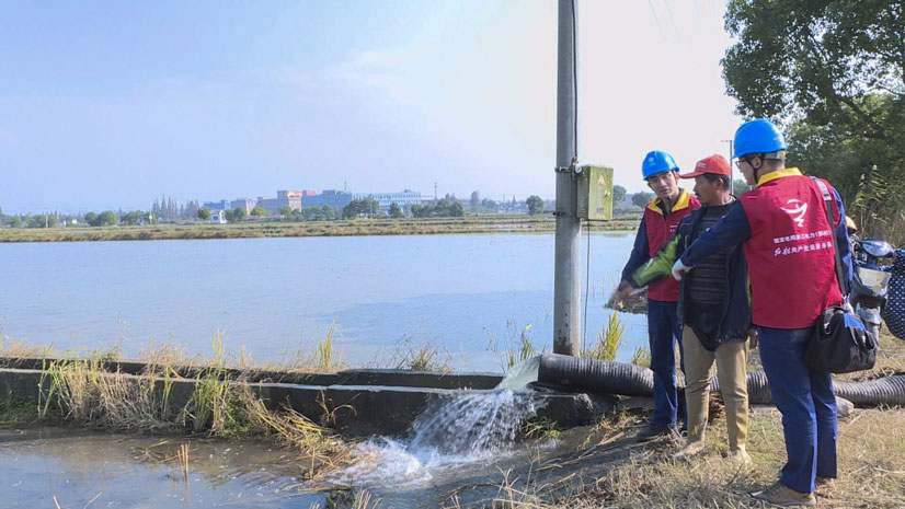 種植藺草,首先要對農(nóng)田進行灌水耕耙,500余畝藺草分布在各個田間,需要用電動潛水泵逐一排灌供水。當日上午,司徒小剛發(fā)現(xiàn)其中一臺潛水泵突然不會出水,無法進行排灌,嚴重影響了冬種進度。著急的他正準備打電話咨詢,恰好碰到前來例行巡視的紅船共產(chǎn)黨員服務隊,急忙上前尋求幫助。聽到該情況,兩位隊員不敢耽誤,立即來到農(nóng)用線路的電桿下,打開引落箱蓋進行檢查。當隊員勵劍用萬用表對電源進行測量時,發(fā)現(xiàn)2個出線樁頭有松弛,導致了出線“跳火”,這才引起了故障。勵劍立即扭緊了二出線羅栓,推上開關,瞬間水就像瀑布一般竄出電動潛水泵,嘩啦啦地流向水渠進入田間。
