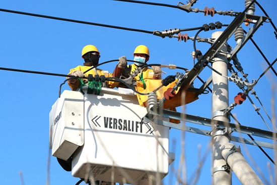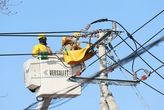 中國(guó)電力網(wǎng)訊 12月15日,氣溫降至零下8攝氏度,在濰坊壽光市北洛工業(yè)園區(qū),國(guó)網(wǎng)壽光市供電公司光明服務(wù)公司工程五隊(duì)帶電作業(yè)人員冒著刺骨的寒風(fēng)對(duì)10千伏鄉(xiāng)直線臨澤支線041號(hào)桿進(jìn)行帶電接火作業(yè),及時(shí)滿足客戶用電需求,為冬季園區(qū)企業(yè)和居民安全可靠用電提供保障。