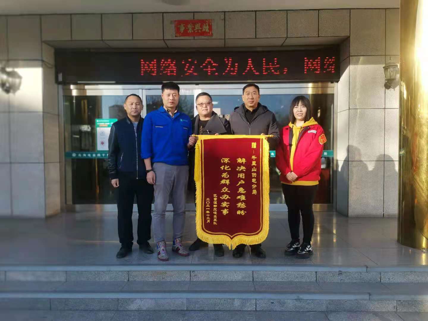 中國(guó)電力網(wǎng)訊 近日,烏海市巴音溫都爾嘎查五隊(duì)物業(yè)公司宋經(jīng)理及村民何茂將一面印有“解決用戶用戶急難愁盼、深化為群眾辦實(shí)事”的錦旗送到烏海市千里山供電分公司副經(jīng)理默日根、俞佳麗的手中,感謝該公司在巴音溫都爾嘎查五隊(duì)用電的辦理過程中給予的大力支持和優(yōu)質(zhì)、高效的供電服務(wù)。