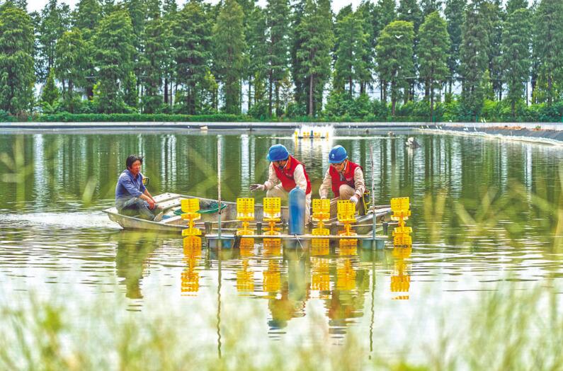供電員工到高淳國家現(xiàn)代農業(yè)產業(yè)園檢查增氧泵運行情況。 杜懿 攝