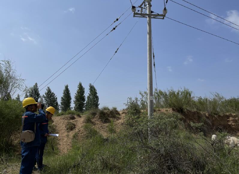 “夏天巡線,除了熱和行走不便,巡線途中,被蜜蜂蟄,被蚊子咬,都是家常便飯。”行進過程中,供電所人員盧文龍說。從供電所出發(fā)到巡線地點,出城區(qū),走山坡,行駛了30多分鐘后,巡線人員到達了110千伏商混變942沙龍廟線第一基桿塔,開始了當天的徒步巡線工作。“這條線路距離市區(qū)比較遠,這邊的用電客戶多以農(nóng)耕為生,現(xiàn)在這個時候正是用電高峰期,所以我們要去檢查一下線路設(shè)備是否存在隱患和缺陷。”青春山供電所副所長王鵬邊走邊解釋說。盧文龍拿出紅外線測溫儀,對準正在運行的線路及金具進行測溫并仔細記錄溫度變化情況;王鵬舉起望遠鏡,仔細檢查桿塔和設(shè)備的運行情況。在每一根電桿前,他們都要從不同角度多方位觀察,轉(zhuǎn)角桿、導(dǎo)線接點、拉線挨個查看。手持儀器的胳膊要在每一處檢測點懸停一段時間,以確保數(shù)值的準確性,連續(xù)十幾根電桿下來,胳膊和手腕就開始發(fā)酸發(fā)漲......這條線路避開了人員密集區(qū),有些地方找不出一條像樣的路,車開不上去就只能靠步行前往。炎炎烈日下,王鵬和盧文龍邊查邊改,對現(xiàn)場能夠處理的隱患及時處理,不能處理的隱患記錄在冊,納入整改計劃,確保及時消除處理,并詳細記錄線路運行情況,做好分析總結(jié)工作,確保巡視取得實效。