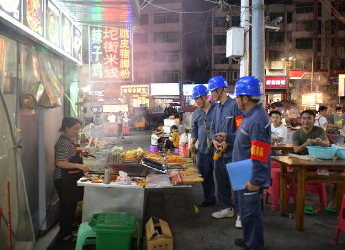 夏日炎炎,儺城坨街、玉溪橋頭、民族風(fēng)情街、楠木園等夜市每晚都人頭攢動(dòng)、熱鬧非凡,升騰起的熱氣為這座城市平添了“煙火氣”。為更好地服務(wù)特色夜市經(jīng)濟(jì)發(fā)展,城區(qū)供電所結(jié)合餐飲行業(yè)用電特點(diǎn),將服務(wù)關(guān)口前移,片區(qū)客戶經(jīng)理拉入街道社區(qū)及夜市的服務(wù)微信群,打造24小時(shí)全方位供電服務(wù)體系。健全供電保障機(jī)制,成立夜市保電黨員服務(wù)小分隊(duì),在晚上用電高峰時(shí)段對(duì)夜市攤位開展“一對(duì)一”“點(diǎn)對(duì)點(diǎn)”服務(wù),重點(diǎn)排查商戶配電箱、電線、插座、表計(jì)等用電設(shè)備,及時(shí)消除安全用電隱患39處,宣傳安全用電常識(shí)23次,現(xiàn)場(chǎng)接受用電咨詢100余次,及時(shí)解決夜市用電問題3起。