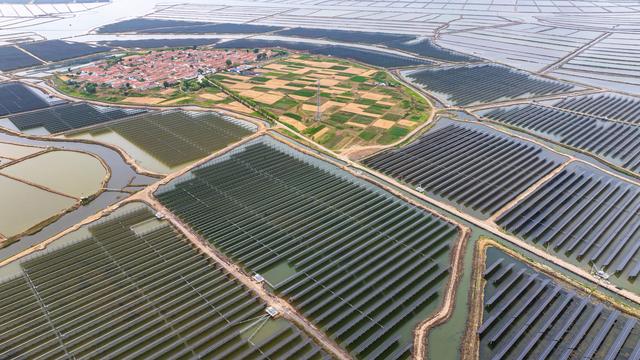 仲夏時(shí)節(jié),天藍(lán)海闊。走進(jìn)位于海陽(yáng)市行村鎮(zhèn)的桃林融進(jìn)200MW漁光互補(bǔ)項(xiàng)目現(xiàn)場(chǎng),整齊有序布列的新能源光伏矩陣熠熠生輝,蔚為壯觀(guān)。“上可發(fā)電、下可養(yǎng)蝦”的漁光互補(bǔ)組合,不僅繪就了綠色鄉(xiāng)村新圖景,還源源不斷為地方經(jīng)濟(jì)發(fā)展注入綠色動(dòng)能。