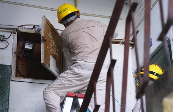 8月6日,網(wǎng)格班員工秦甫濤和同事頭戴安全帽,手持工具箱,肩扛電表箱,快步走進永川郵電小區(qū)。