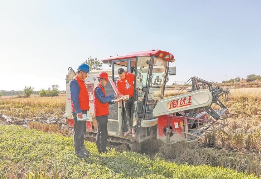 2024年秋收期間,在肥東縣楊店鄉(xiāng),黨員服務(wù)隊(duì)隊(duì)員為客戶講解安全用電知識。 陳海東 攝