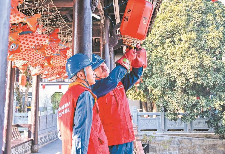 1月21日,黨員服務(wù)隊(duì)隊(duì)員在肥西縣三河古鎮(zhèn)排查用電設(shè)備隱患。劉玲 攝