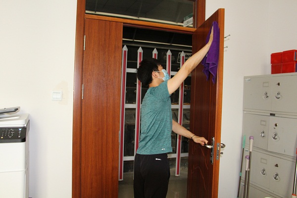 中國電力網(wǎng)訊 “大家把門和柜子上面都擦一擦、消消毒,讓病毒無處可藏”,5月19日,新疆生產(chǎn)建設(shè)兵團第一師電力有限責(zé)任公司中心調(diào)度所開展衛(wèi)生大掃除活動,確保疫情防控?zé)o死角。