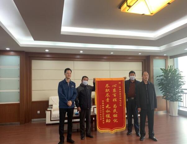11月25日一大早,樓德鎮(zhèn)埠前村村民將一面繡有“盡職盡責無私援助心系百姓為民排憂”的錦旗送到國網(wǎng)新泰市供電公司總經(jīng)理賈政起手中。對供電公司長期以來的優(yōu)質(zhì)服務及服務地方經(jīng)濟發(fā)展助力該村新農(nóng)村建設,以最快速度遷改線路等行為表示感謝。