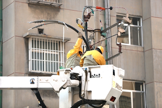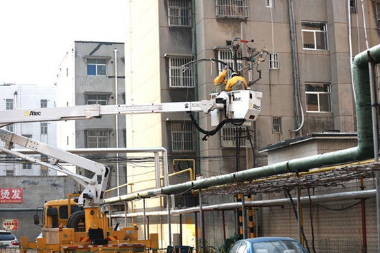 中國電力網(wǎng)訊 1月6日,濰坊市壽光地區(qū)氣溫出現(xiàn)“斷崖式”下跌,氣溫降至零下17攝氏度。在壽光市圣城街道某小區(qū),國網(wǎng)壽光市供電公司帶電作業(yè)人員冒著嚴(yán)寒對10千伏城一線115號臺區(qū)帶電更換電纜,進(jìn)一步提升線路安全供電能力,為小區(qū)居民冬季電采暖用電提供堅強(qiáng)保障。