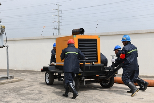 針對今年東??h域雨水增多、氣候變化頻繁,本次防汛演練以東海縣域突降暴雨為背景,110千伏濱河變模擬暴雨后排水系統(tǒng)排水不及,雨水經(jīng)過電纜溝倒灌進(jìn)變電站,綜合檢驗多部門協(xié)同合作,出現(xiàn)汛情時運維人員的防汛對應(yīng)能力。
