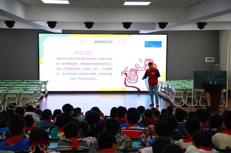 課堂上,該公司黨員服務(wù)隊(duì)隊(duì)員雷盧鈞從觸電的危害、觸電的方式、安全用電與預(yù)防措施、觸電急救等四個(gè)方面進(jìn)行生動(dòng)形象的講解,并通過有獎(jiǎng)問答的方式與孩子們一同回顧了“生活用電小常識(shí)”、“錯(cuò)誤用電的危害”等知識(shí),孩子們紛紛舉手搶答,課堂氣氛反應(yīng)十分熱烈。