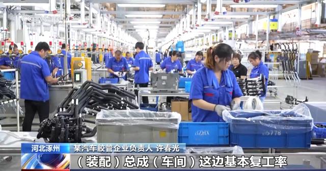 某汽車膠管企業(yè)負責人 許春光:膠管擠出線11條復工了4條,裝配總成車間這邊基本復工率大概在70%—80%之間,我估計裝配總成車間還有不到一個星期差不多就恢復正常了。