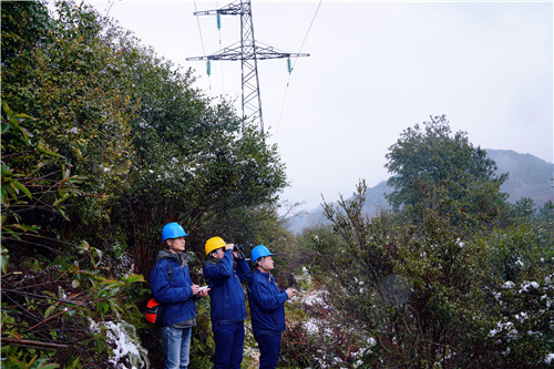 國網(wǎng)鷹潭供電公司輸電運(yùn)維人員通過“人工+無人機(jī)”的巡檢方式,對保障鷹廈電氣化鐵路供電的110千伏白云、龍鐵線開展特巡(萬智輝 攝)