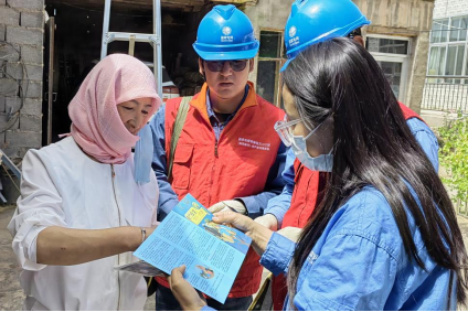 圖為駐村電力網(wǎng)格員為村民講解安全用電知識(shí)