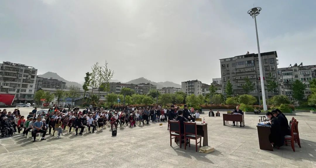 4月23日下午,十堰市張灣區(qū)人民法院環(huán)境資源審判合議庭將法庭搬至柏林鎮(zhèn)廣場,現(xiàn)場開庭審理并當庭宣判一起因架設電網(wǎng)捕獵野生動物并致使一村民被電傷的刑事案件,來自柏林鎮(zhèn)各村委會干部、周邊村民、青年志愿者100余人現(xiàn)場旁聽。