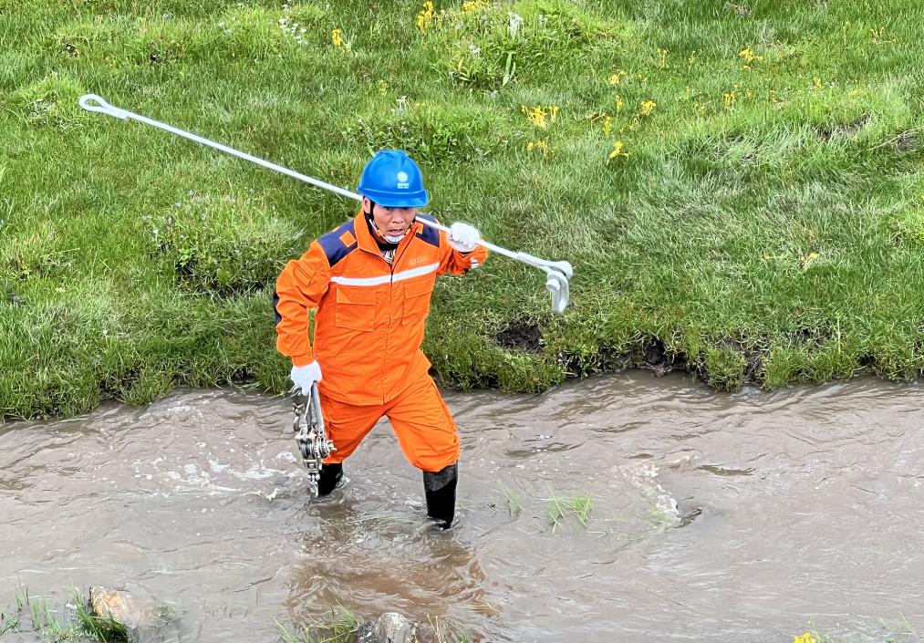 此次搶修工作的重點是10kV若柯河牧場支線引流線搭接和校桿。由于該支線地處偏遠、地形復(fù)雜,加上持續(xù)降雨,增加了搶修難度。搶險隊伍首先使用吊車進行扶正校桿,確保電桿穩(wěn)定。隨后,隊員們小心翼翼地搭接引流線,確保每一處連接都牢固可靠。