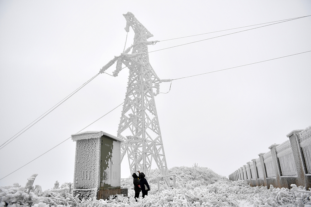 本輪寒潮期間,湖南省提前布置51套主網(wǎng)、142套配網(wǎng)融冰裝置,8300多名電力工人隨時待命,做好雨雪、冰凍、強風(fēng)等異常天氣下的設(shè)備特巡和特護,守護電網(wǎng)安全,守護萬家燈火。(新華社記者 陳振海 攝)