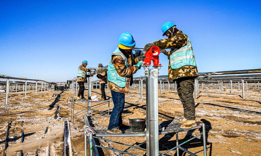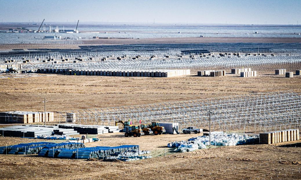 蒙陜寧三省交界的毛烏素沙地腹部,國家能源集團(tuán)國電電力蒙西鄂爾多斯采煤沉陷區(qū)300萬千瓦光伏基地項目建設(shè)如火如荼。作為國家第二批以沙漠、戈壁、荒漠地區(qū)為重點的大型光伏基地項目之一,10.5萬畝的“光伏海洋”每年將把近57億度綠色電能從蒙西戈壁輸送至黃海之濱,滾滾電流跨越1300多公里長途跋涉,將有效緩解山東這個東部沿海工業(yè)大省的電力缺口,為東部地區(qū)的經(jīng)濟(jì)社會發(fā)展提供強大的綠色能源保障。該項目已完成175萬千瓦容量樁基施工,65萬千瓦容量支架施工,25萬千瓦容量組件安裝,1號升壓站已具備并網(wǎng)條件。