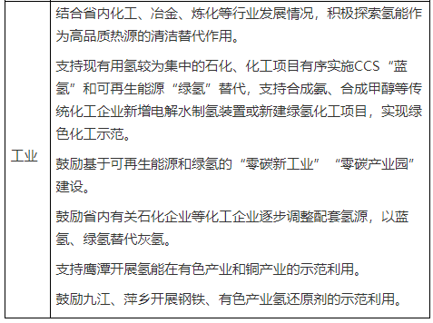 支持鷹潭、萍鄉(xiāng)、景德鎮(zhèn)、宜春等結合有色產業(yè)、銅產業(yè)集群發(fā)展規(guī)劃和鋼鐵產業(yè)、陶瓷生產綠色轉型、鋰電產業(yè)融合等,探索氫能規(guī)?;瘧茫七M氫冶煉技術。