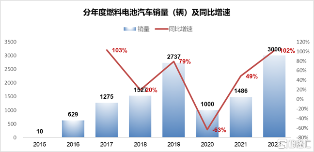 2022年氫燃料汽車(chē)市場(chǎng)銷(xiāo)量整體翻倍,平均裝車(chē)電量也有了大幅提升,所以不是市場(chǎng)總量的原因。