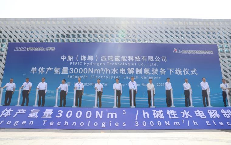 5月17日,國內(nèi)最大單體產(chǎn)氫量3000Nm³/h水電解制氫裝備下線儀式暨“氫動未來”氫能產(chǎn)業(yè)發(fā)展大會在河北省邯鄲市中國船舶集團第七一八研究所(簡稱七一八所)舉辦。“此次下線投用的制氫裝備,突破了多項前沿科學(xué)難題和核心關(guān)鍵技術(shù),實現(xiàn)了單體產(chǎn)氫量由2000Nm³/h到3000Nm³/h的跨越,對我國加快構(gòu)建清潔低碳、安全高效的能源體系具有重要意義。”七一八所所長、黨委副書記李俊華表示。