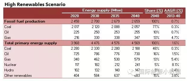 在大大提高能效的情境下,2040年一次能源供應(yīng)只有38.78億噸標(biāo)油,其中煤炭仍占48%、石油16%、天然氣11%、核電6%、水電3%、非水可再生能源14%。從發(fā)電量來看,2040年總裝機(jī)達(dá)2665吉瓦,發(fā)電量達(dá)9.39萬億千瓦時(shí),煤電占51%、天然氣發(fā)電6%、核電10%、水電16%、風(fēng)電 10%、光伏4%、生物質(zhì)4%。