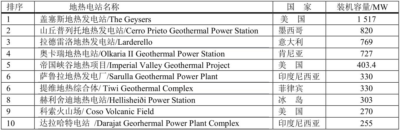 全球十大地熱電站