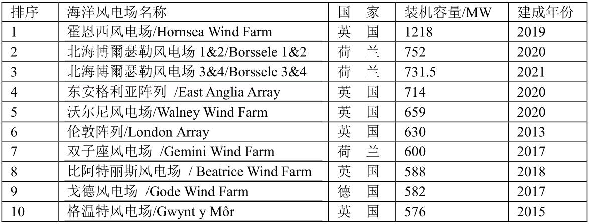 全球十大海洋風電場