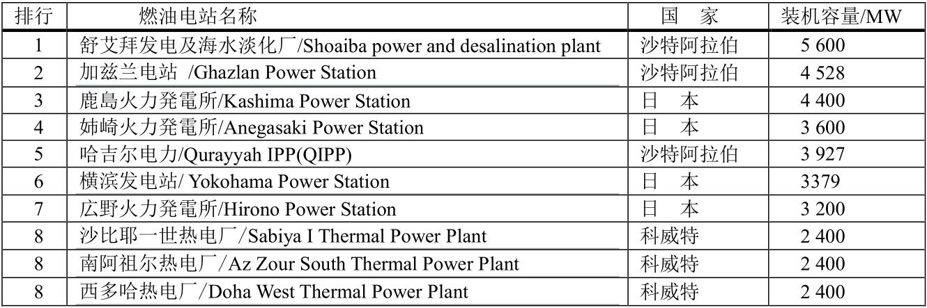 全球十大燃油電站