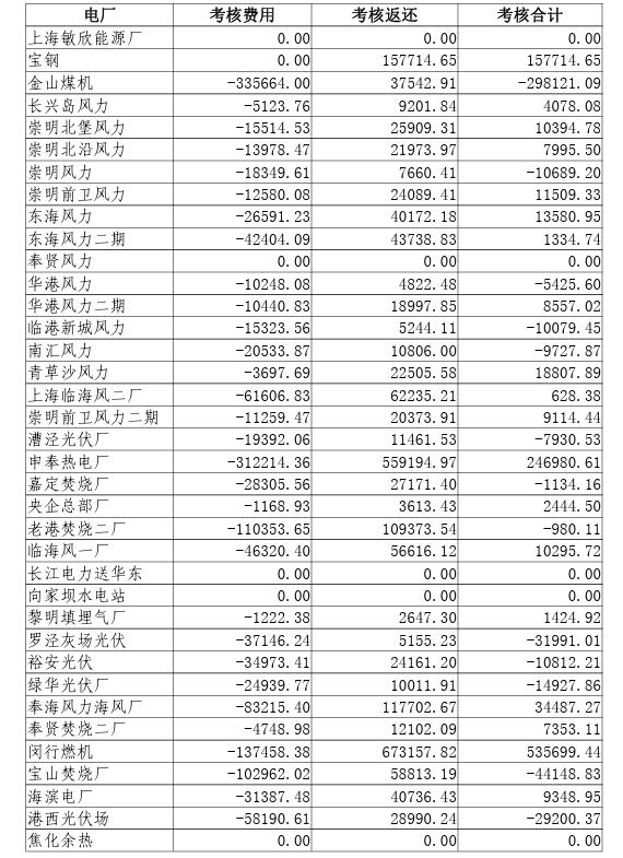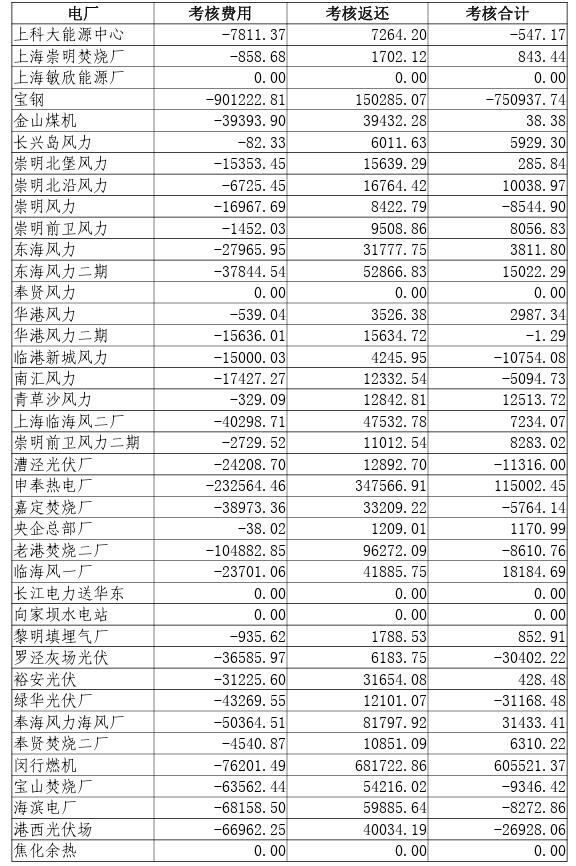 2023年10-12月上海電網(wǎng)發(fā)電廠并網(wǎng)運行考核費用結(jié)算表