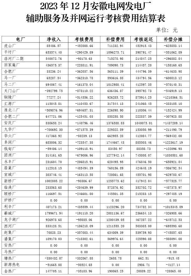 附件:2023年10-12月安徽電網(wǎng)發(fā)電廠輔助服務(wù)及并網(wǎng)運(yùn)行考核費(fèi)用結(jié)算表