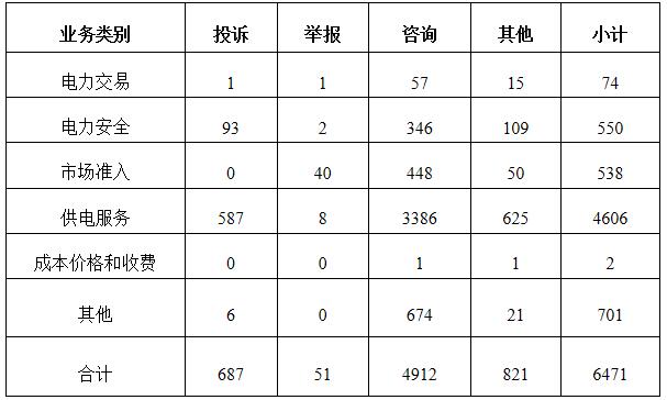 電力行業(yè)投訴舉報數(shù)量為738件,占全部投訴舉報數(shù)量的94.25%。反映的主要問題有:一是部分地區(qū)受雷雨強風(fēng)等惡劣天氣影響導(dǎo)致故障停電,停電后修復(fù)周期較長;二是部分地區(qū)供電設(shè)施老舊,網(wǎng)架比較薄弱,供電半徑長、線徑小,導(dǎo)致頻繁停電和低電壓;三是個別供電企業(yè)工作人員服務(wù)意識不強,影響了群眾正常用電或者辦理涉電業(yè)務(wù);四是部分地區(qū)電力企業(yè)辦理承裝(修、試)電力設(shè)施許可證時,使用非本企業(yè)員工證件,涉嫌提供虛假申請材料。