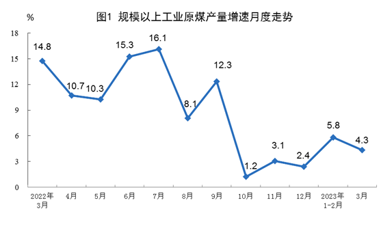 3月份,規(guī)模以上工業(yè)主要能源產品生產均保持同比增長。與1—2月份比,原煤、天然氣生產有所放緩,原油、電力生產加快。