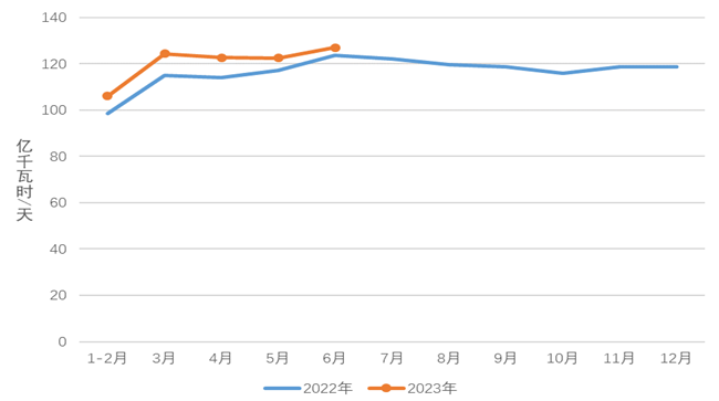 分產業(yè)看①,1-6月,第一產業(yè)用電量577億千瓦時,同比增長12.1%;第二產業(yè)用電量28670億千瓦時,同比增長4.4%;第三產業(yè)用電量7631億千瓦時,同比增長9.9%;城鄉(xiāng)居民生活用電量6197億千瓦時,同比增長1.3%。