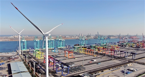 12月15日,隨著天津港北疆港區(qū)C段智能化集裝箱碼頭北側(cè)的兩臺風機葉片緩緩啟動,全球首個零碳碼頭智慧綠色能源系統(tǒng)投用,并在天津港并網(wǎng)發(fā)電。
