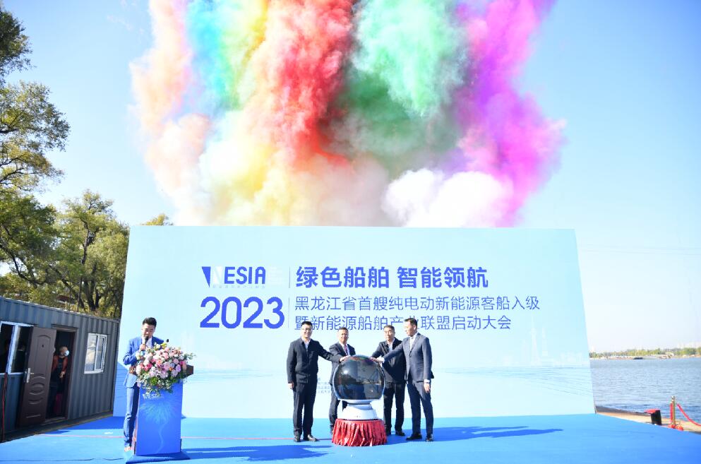 儀式上,黑龍江航運集團、哈爾濱電氣集團、哈爾濱工程大學、中國船級社哈爾濱分社等發(fā)起單位代表按下黑龍江省新能源船舶產(chǎn)業(yè)聯(lián)盟成立“啟動鍵”。