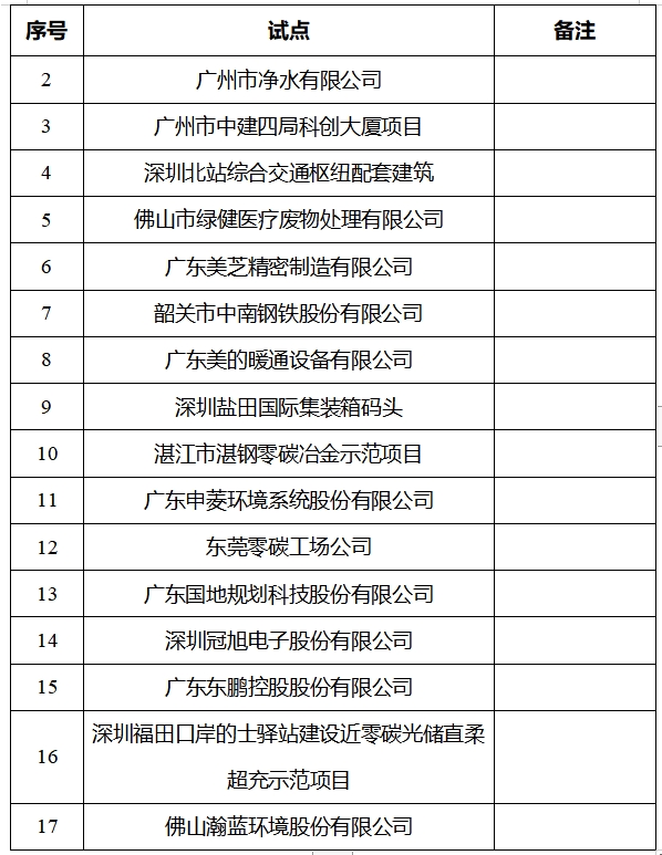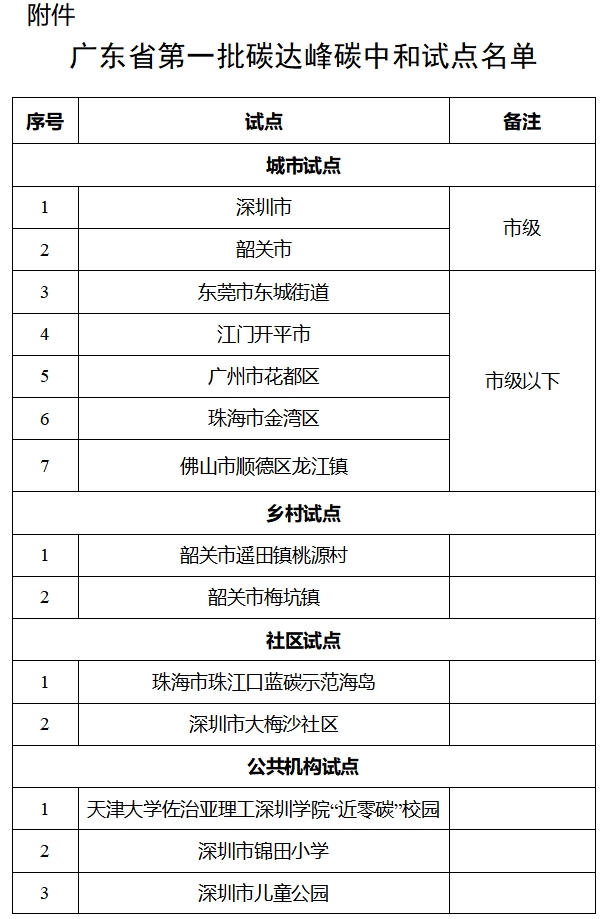 廣東省公布第一批碳達(dá)峰碳中和試點(diǎn)公示名單