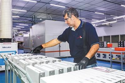 位于巴西亞馬孫州首府馬瑙斯的比亞迪電池工廠主要生產(chǎn)磷酸鐵鋰電池模組,為巴西的電動(dòng)大巴提供可靠的新能源動(dòng)力,推動(dòng)了當(dāng)?shù)乜沙掷m(xù)能源產(chǎn)業(yè)的發(fā)展,為減少碳排放和環(huán)境保護(hù)作出了貢獻(xiàn)。圖為當(dāng)?shù)貑T工正在掃描電芯條碼。里卡多·梅內(nèi)塞斯攝