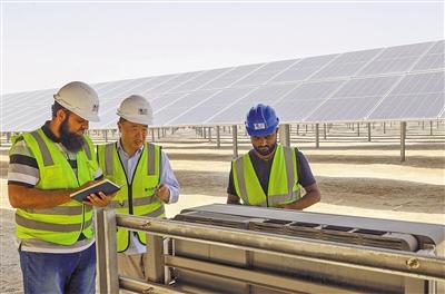由中國企業(yè)總承包的阿聯(lián)酋艾爾達(dá)芙拉光伏電站可供20萬戶居民用電,每年減少二氧化碳排放240萬噸,使清潔能源在阿聯(lián)酋總能源結(jié)構(gòu)中的比重提高到13%以上。圖為中外員工在艾爾達(dá)芙拉光伏電站工作。本報(bào)中東中心分社 納達(dá)爾·達(dá)烏德攝