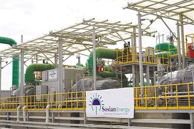 由中國企業(yè)承建的肯尼亞索西安地?zé)犭娬居谌ツ?月底投產(chǎn)送電,成為非洲首個(gè)從設(shè)計(jì)、產(chǎn)品生產(chǎn)到建設(shè)、調(diào)試完全由中國企業(yè)獨(dú)立完成的地?zé)岚l(fā)電站。該電站設(shè)計(jì)裝機(jī)容量35兆瓦,每年可減少二氧化碳排放24萬噸。圖為索西安地?zé)犭娬?號發(fā)電機(jī)組。本報(bào)記者 黃煒鑫攝