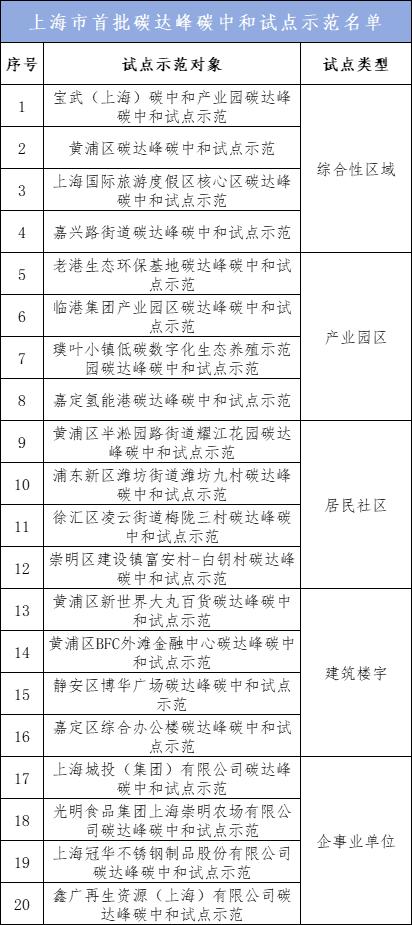 今年8月15日是第二個全國生態(tài)日,在長寧區(qū)舉辦的全國生態(tài)日上海主場活動上,上海首批碳達峰碳中和試點示范名單公布,包含20個試點示范對象。