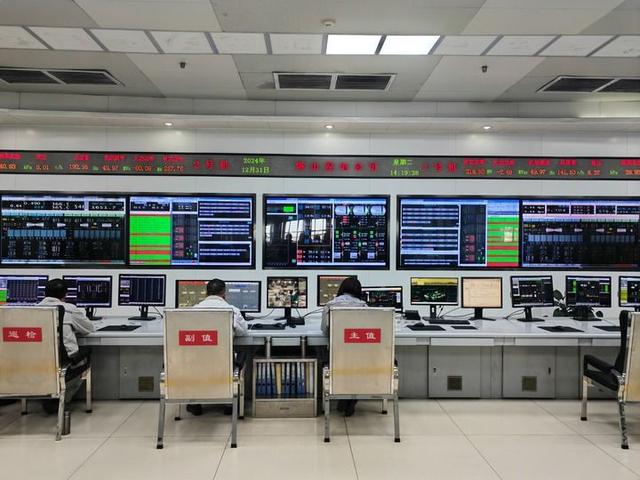 工作人員在晉控電力塔山發(fā)電山西有限公司調度中心忙碌(2024年12月31日攝)。新華社記者 樊欣陽 攝