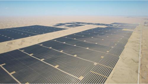 該項(xiàng)目位于武威市涼州區(qū)九墩鎮(zhèn)東側(cè)的騰格里沙漠邊緣地帶,總裝機(jī)容量20萬千瓦,占地面積約6.57平方千米,是甘肅省“十四五”第一批大基地光伏治沙項(xiàng)目之一。項(xiàng)目年均發(fā)電量約3.8億千瓦時(shí),每年可節(jié)約標(biāo)準(zhǔn)煤11.6萬噸,減少排放二氧化碳31.7萬噸,具有良好的生態(tài)環(huán)境治理和經(jīng)濟(jì)效益。