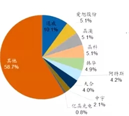 但是晶硅分為單晶硅和多晶硅,這兩者最大的區(qū)別是在于硅的純度和雜質(zhì)摻雜度。單晶硅具有較高的純度和較少的雜質(zhì),而多晶硅的純度較小且雜質(zhì)較多,所以單晶硅較多晶硅而言,單晶硅具有良好的導(dǎo)電性,同時(shí)也是主流的電池片。目前我國(guó)單晶硅市場(chǎng)份額占64.5%。這就說(shuō)明在原材料的供應(yīng)上不存在瓶頸。