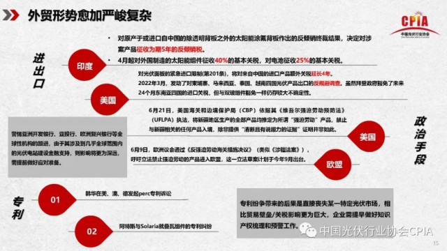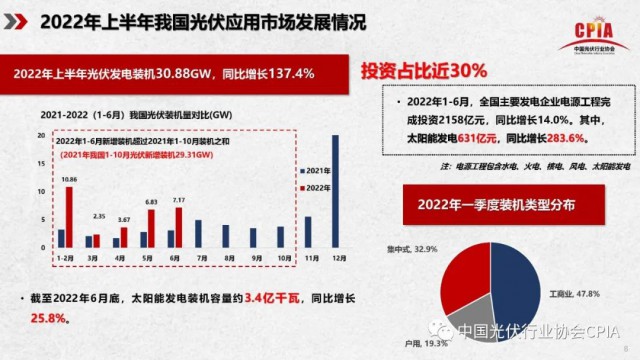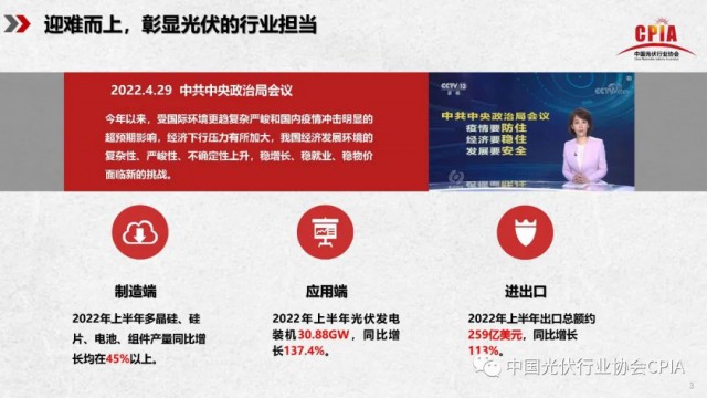 2022年7月21日,由中國光伏行業(yè)協(xié)會主辦的“光伏行業(yè)2022年上半年發(fā)展回顧與下半年形勢展望研討會”采用線上直播形式順利召開。中國光伏行業(yè)協(xié)會名譽(yù)理事長王勃華出席會議并作“2022年光伏行業(yè)上半年發(fā)展回顧與下半年形勢展望”報告。