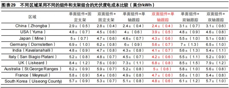 采用跟蹤支架雖然會增加初始投資和運維成本,但由于具有明顯的發(fā)電增益,能夠?qū)崿F(xiàn)更低的度電成本。據(jù)彭博新能源的統(tǒng)計,2021上半年,采用跟蹤支架系統(tǒng)的光伏電站項目的全球平均度電成本約38美元/MWh,明顯低于固定支架光伏項目。