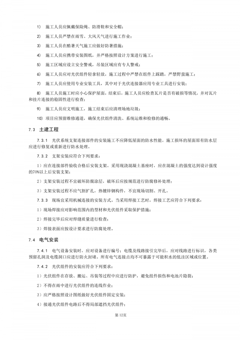 分布式光伏設(shè)計(jì)、安裝和運(yùn)維企業(yè)應(yīng)配備光伏發(fā)電領(lǐng)域的專職技術(shù)人員,應(yīng)具備與服務(wù)內(nèi)容相匹配的技術(shù)能力,鼓勵(lì)從業(yè)人員積極提升專業(yè)能力,主動參加由行業(yè)組織或?qū)I(yè)機(jī)構(gòu)組織開展的針對性系列技術(shù)培訓(xùn)并取得培訓(xùn)合格證書。