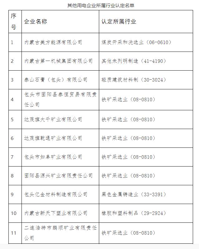 按照《自治區工信廳關于同意內蒙古電力交易市場主體年度信息核查工作的通知》(內工信經運字〔2020〕320號)文件要求,內蒙古電力(集團)有限責任公司于2020年11月-2021年6月期間開展了信息核查工作,經核查發現部分企業市場準入產品信息與實際實際生產情況明顯不符。為進一步規范市場主體信息管理,降低企業轉產變更引發的市場風險與矛盾,及時處理準入信息與實際生產不符的問題,保障電力市場平穩有序運行,各盟市工信部門對信息核查問題用電企業所屬行業進行了重新認定,現將盟市上報的企業認定名單予以公示(見附件)。如有異議,可通過來訪、來函、來電等形式向我廳反映。