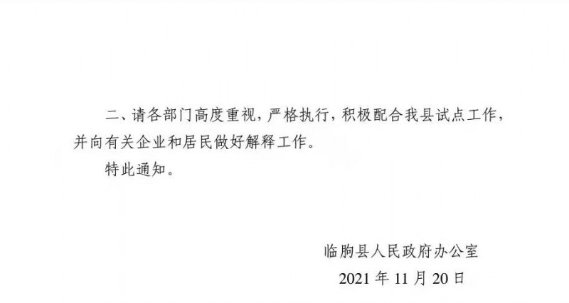 二、請各部門高度重視,嚴格執行,積極配合我縣試點工作,并向有關企業和居民做好解釋工作。