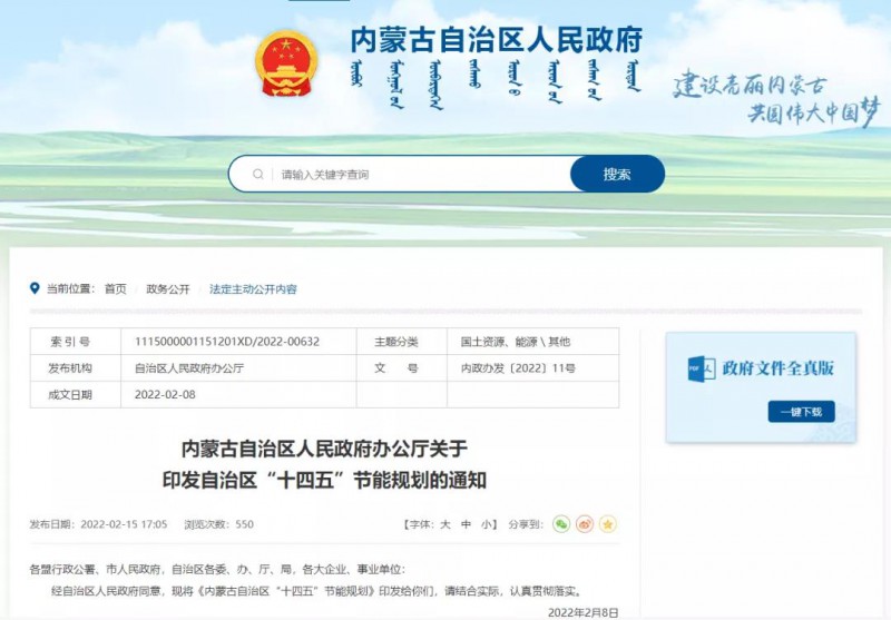 2月15日,內(nèi)蒙古自治區(qū)人民政府發(fā)布關(guān)于印發(fā)自治區(qū)“十四五”節(jié)能規(guī)劃的通知,通知中多次提到光伏: